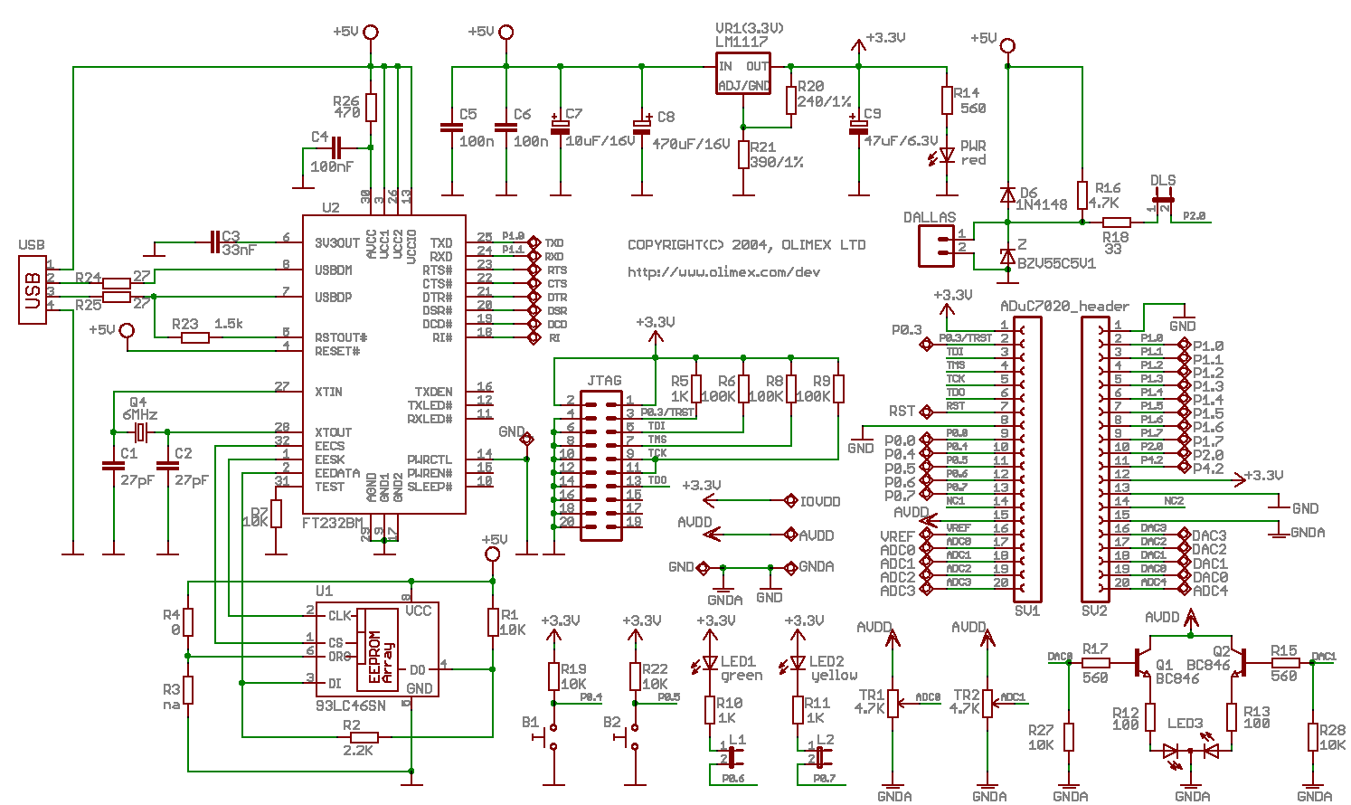 - USB-RS232 convertor and interface to ADuC7020, can be used for serial download